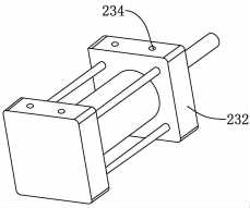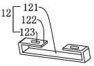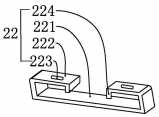 第二實(shí)施例,如圖3至5所示,本實(shí)施例與第一實(shí)施例不同的是:在凹槽203內(nèi)部設(shè)有槽口204,固定片22包括連接部221和設(shè)于連接部221兩側(cè)的彎鉤部222,彎鉤部222 的邊緣設(shè)有用于卡入槽口204的定位部224。當(dāng)螺釘穿過腰圓孔123和螺紋孔234時(shí),定位部224卡于槽口204內(nèi)并壓緊,將鋁管202和支撐部232固定聯(lián)接。