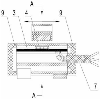 圖2為本實用新型的無接觸式磁塊懸浮型直線位移傳感器的A-A向的剖視圖;