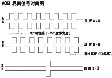 AQB的輸出信號(hào)與一般的增量式編碼器輸出信號(hào)無(wú)異,信號(hào)由A/B/Z通道,包括反向通道(主要作為對(duì)外來(lái)噪音的騷擾)的脈沖產(chǎn)生,A通道和B通道經(jīng)常保持著90°的相位差。