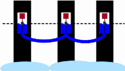 在每個(gè)液壓支架處放置一個(gè)容器,所有容器的底部相互連通,那么考察站的水平度就可以通過每個(gè)容器中的液位計(jì)算得到,然后再通過液壓伺服控制系統(tǒng)來調(diào)節(jié)每個(gè)液壓支架的高度,其原理如下圖: