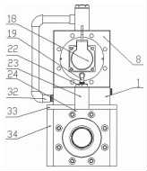 液壓缸的上方設(shè)有油路集成塊1,位于液壓缸的缸底31 —端,油路集成塊的一端通過螺栓與液壓缸的缸底31固定連接,另一端通過螺栓與油路集成塊橫向支撐板33固定連接,在油路集成塊橫向支撐板33的下端對稱設(shè)有油路集成塊豎向支撐板34,油路集成塊豎向支撐板34通過螺栓與油路集成塊橫向支撐板33固定連接。油路集成塊橫向支撐板33和豎向支撐板34的作用是支撐油路集成塊1。