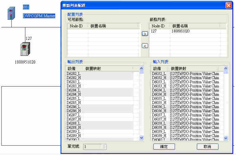 5. 在CAN 總線配置軟體中, 為 CAN 總線主站配置 PDO 物件。